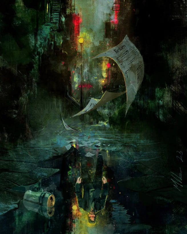 Il tributo di Alessandro Manzella (che è anche l’autore del barile esplosivo che vedete quando vi iscrivete a questa newsletter) ad Alan Wake II. Siete ancora in tempo per commissionargli qualche regalo di Natale. Io l’ho fatto già. Due volte.