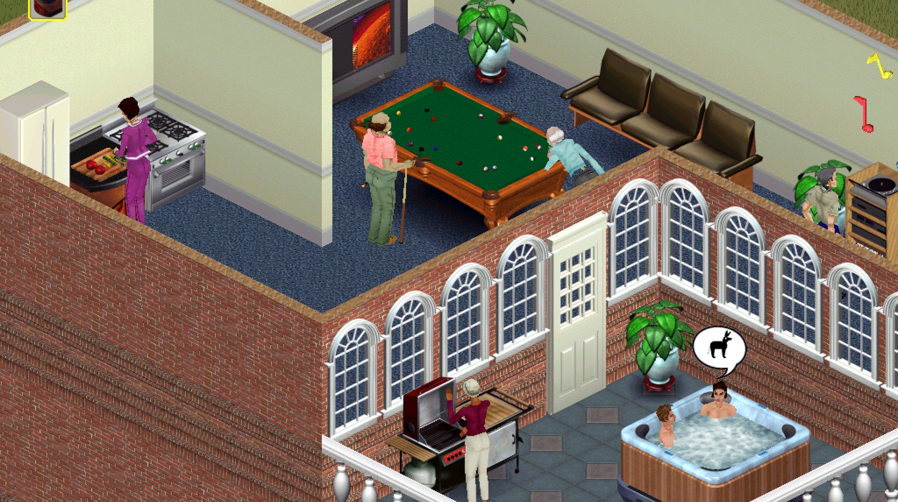 Quello che è nato come un gioco in cui progettare e costruire case, diventa un simulatore di vita individuale e sociale: The Sims. L’autore è Will Wright, lo stesso di SimCity, le città in cui idealmente si muovono questi sims. Comunicano in maniera semplificata, attraverso una mimica evidente da slapstick comedy e fumetti, sono accompagnati da una serie di indicatori che ne misurano i parametri necessari e non si è capito se preferiscano stare a casa a fissare il televisore o uscire a farsi un aperitivo con gli amici.