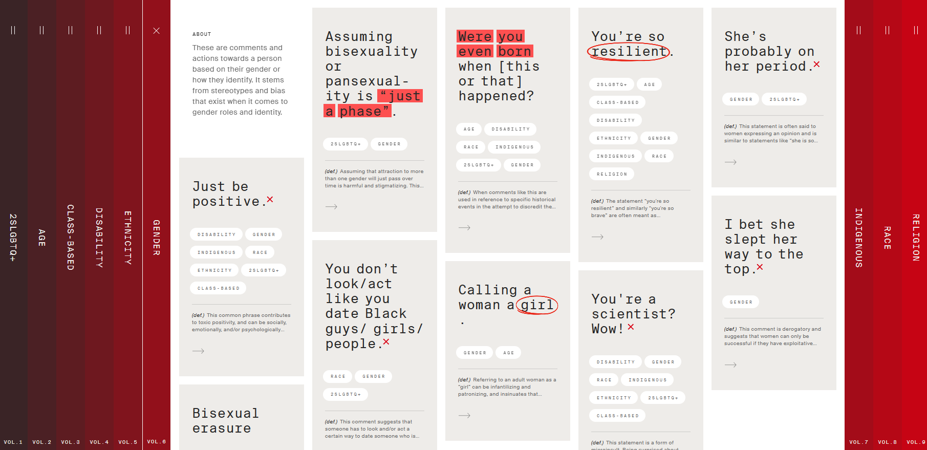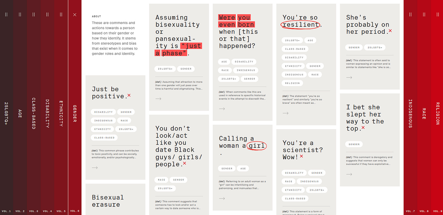 Micropedia è una specie di piccola enciclopedia che cataloga commenti, modi di dire e frasi fatte che possono essere considerate micro aggressioni verbali.