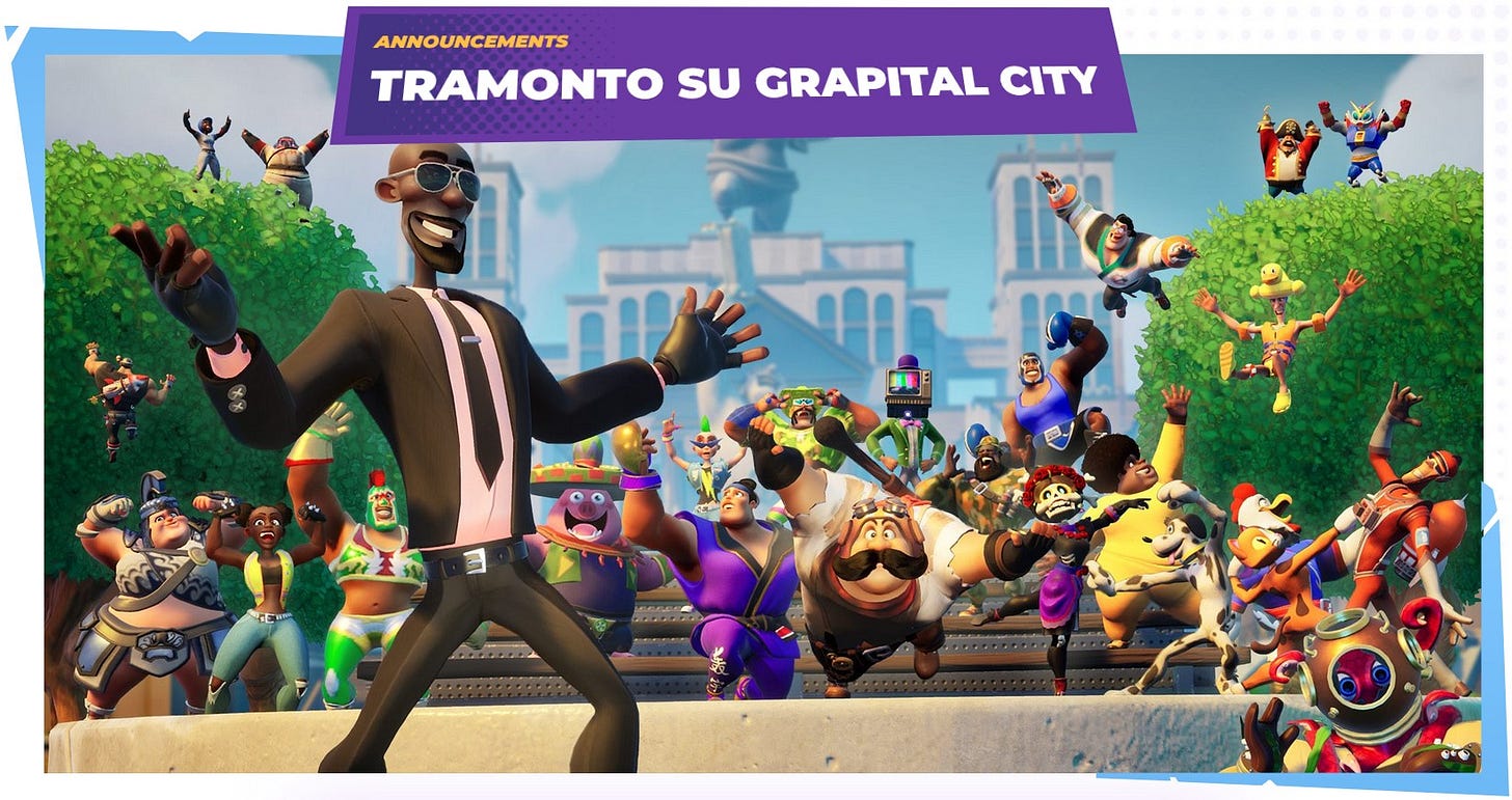 È andata anche peggio a Rumbleverse. Il gioco di Epic e Iron Galaxy (Killer Instinct) ha fatto sapere al suo pubblico che i server saranno spenti il 28 febbraio, dopo poco più di sei mesi dall’accensione (11 agosto 2022). In questo caso l’annuncio sceglie di utilizzare “sunset” come sostantivo. Potete trovare entrambe le immagini relative alla notizia in cima a questa sezione: la prima è quella pubblicata sulla versione inglese del sito ufficiale, la seconda su quella italiana.