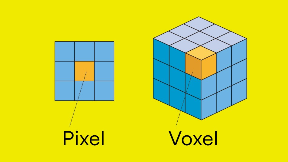 I voxel sono pixel volumetrici, di fatto dei cubetti che fanno parte di un modo di suddividere l’immagine che prevede un’enorme griglia di cubetti. Mettendoli vicini, si costruiscono elementi che possono poi essere smontati e ridotti nuovamente a cubetti. Per comodità potete pensare a una costruzione in Lego, ma con tutti pezzetti regolari e identici tra di loro.