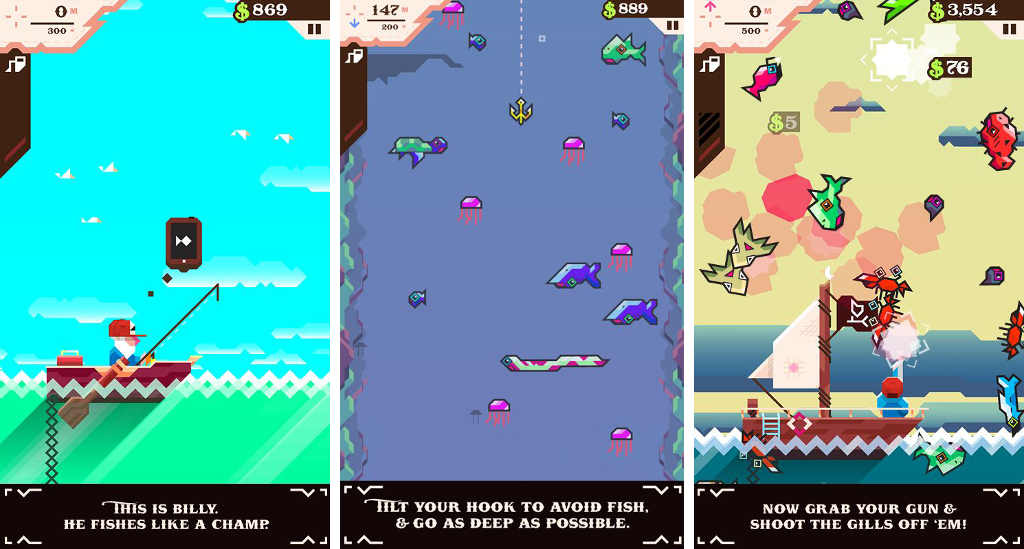 Debutto: iOS (Apple)Diceva un noto pensatore del ventesimo secolo che deprimere gli adolescenti è come sparare a dei pesci in un barile. Ridicolous Fishing non vuole deprimere nessuno, ma in quanto a sparare ai pesci… parliamone. Il gioco dell’olandese Vlambeer sfrutta i sistemi a disposizione degli smartphone per organizzare battute di pesca poco ordinarie: si inclina il telefono per evitare le prede quando la lenza deve scendere quanto più in profondità sia possibile, e poi si fa la stessa cosa per andare a raccogliere i pesci quando la lenza sta risalendo. Una volta fuori dall’acqua, il bottino viene sparso per tutto lo schermo: pronto per essere colpito con le dita attraverso il touch screen. Non è deprimente, ma i pesci vengono sparati ovunque lo stesso.