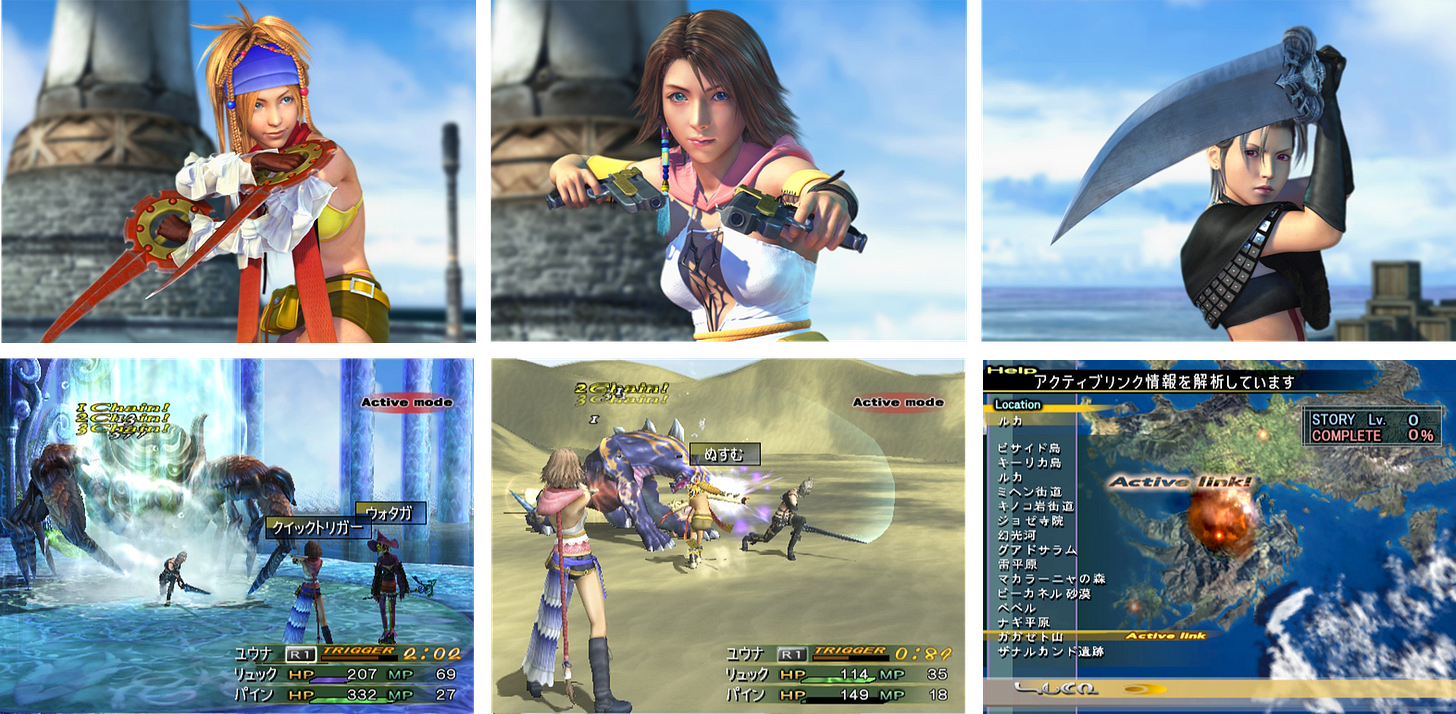 Debutto: PlayStation 2 (Sony)Final Fantasy X-2 è qui per testimoniare che, anche nel mondo di Final Fantasy, i seguiti diretti non sono più un tabù. A portare avanti il nuovo racconto c’è il team YRP, formato da Yuna, Rikku e Paine, tutte pronte a esplorare un sistema di gioco che lascia ai giocatori più libertà decisionale rispetto al recentissimo passato.
