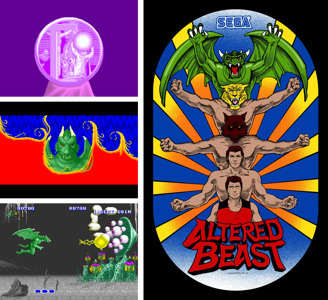 Debutto: arcadeAltered Beast porta in sala giochi lo scontro divino tra Zeus e il demone Neff. È una scusa, architettata senza troppa cura, per mettere assieme un picchiaduro che non prende nessuno alla sprovvista, ma che ha muscoli a sufficienza per strappare via più di una moneta dalle mani di chi gli gira attorno. Il bisteccone protagonista può trasformarsi in una bestia ancora più brutale e ogni livello garantisce una mutazione differente e spettacolare. Si arrivano a tirare certe pizze infernali che Neff finirà per ricordarsele per nove gironi.
