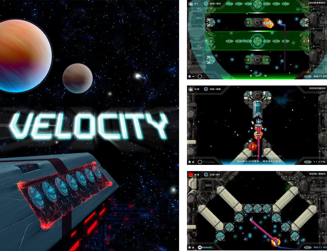 Debutto: PSP (Sony)Velocity è uno sparatutto con scrolling verticale che, visto da una certa distanza, può giustamente ricordare i classici degli anni 80. Così non è, perché nella ricetta di gioco articolata dagli inglesi di FuturLab ci sono idee mai viste prima, tantomeno ai tempi di Space Invaders, Truxton o Xenon 2: Megablast. In Velocity si fa surf in mezzo al buio profondo dello spazio prendendo di mira i nemici, ma è altrettanto importante teletrasportarsi tra le varie zone dei livelli per riuscire a salvare chi è in difficoltà (o anche solo per non rimetterci a propria volta la carlinga).