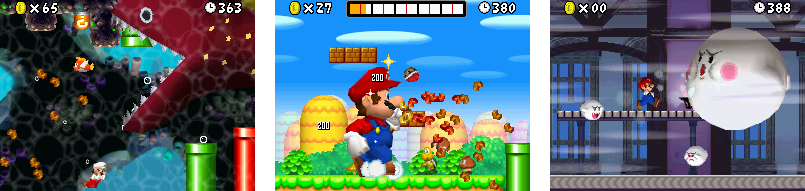 New Super Mario Bros. sposta le lancette indietro fino al 1990 di Super Mario World (Super Nintendo Entertainment System), quando per l’ultima volta un’avventura-di-balzi dell’eroe in salopette era stata concepita con sole due dimensioni a disposizione. L’operazione è dichiaratamente nostalgica, ma il risultato non è a esclusivo appannaggio dei vecchi tromboni che sono stati fin troppo trombati dalle tre dimensioni di Super Mario 64 e Super Mario Sunshine.