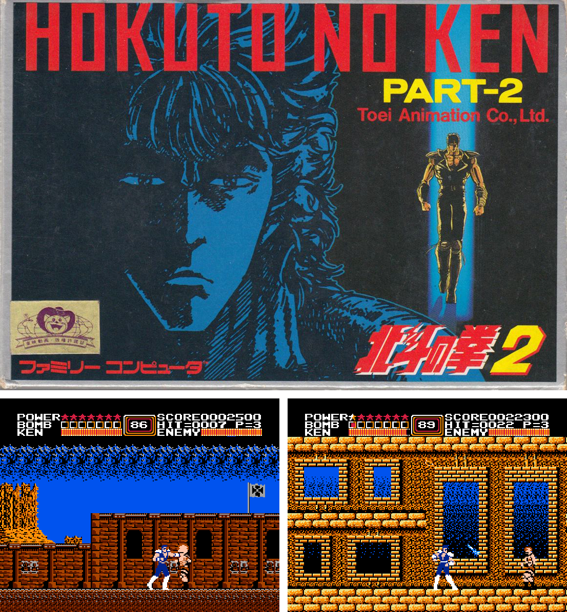 Debutto: NES (Nintendo)Fist of the North Star è il primo dei videogiochi dedicati all’eroe che sta facendo esplodere un sacco di gente in televisione. Anzi, è il primo a imbarcarsi verso l’occidente, perché un primo capitolo è già stato pubblicato nel 1986 ma è rimasto in Giappone. In questo Fist of the North Star la sottile eleganza del Kenshiro1 è riproposta con efficacia, entro i limiti concessi dall’hardware a 8 bit del NES ovviamente. Però la gente esplode pure qua e ci sono nuove tecniche da sbloccare e una manciata di boss da affrontare. Il senso di progressione e perfezionamento delle tecniche del Kenshiro accompagnano una parte delle vicende della seconda, splendida, serie animata. Poteva andare molto peggio.