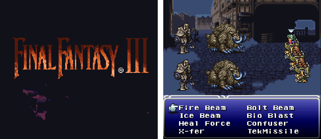 Debutto: Super NES (Nintendo)È uscito Final Fantasy VI e con il suo mondo steampunk ambisce a imporre una nuova estetica alla serie di maggior successo di Squaresoft. C’è un impero contro cui scagliarsi, un gruppo di rivoluzionari pronto a farlo e un destino da sovvertire: si prospetta un’avventura evocativa e tecnicamente impressionante. Final Fantasy VI rimette in moto il sistema di combattimento ATB (Active Time Battle) già introdotto in Final Fantasy IV e sfrutta la generosa dotazione hardware del Super NES per accerchiare i giocatori con effetti speciali.