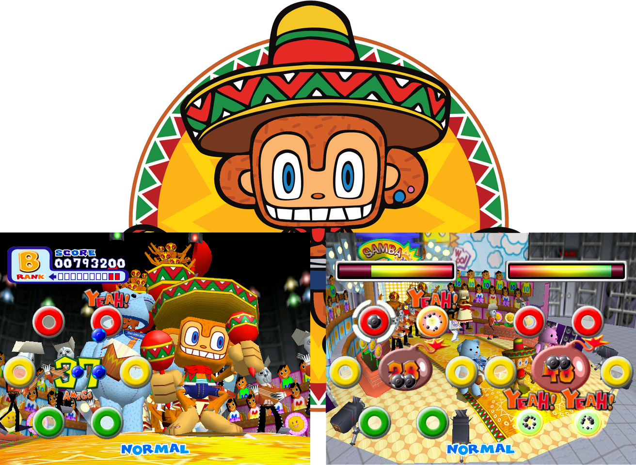 Samba De Amigo è il primo esperimento di Sega nel nascente campo dei giochi musicali, altrimenti detti, dai più coraggiosi, rhythm’n game. Dove altri vedono chitarre elettriche, Sega vede delle maracas. Se qualcuno sogna idol virtuali e chitarristi dai lunghi capelli alla Europe, altri immaginano scimmiette con sombreri colorati. Su sei punti dello schermo sono distribuiti altrettanti indicatori, che segnalano dove e quando muovere le mani e gli strumenti. Tra i pezzi pronti per essere sculettati con le maracas in mano: Livin’ La Vida Loca (Ricky Martin), Macarena (Los Del Rio, Bayside Boys), La Bamba (Ritchie Valens), Thubthumping (Chumbawamba).