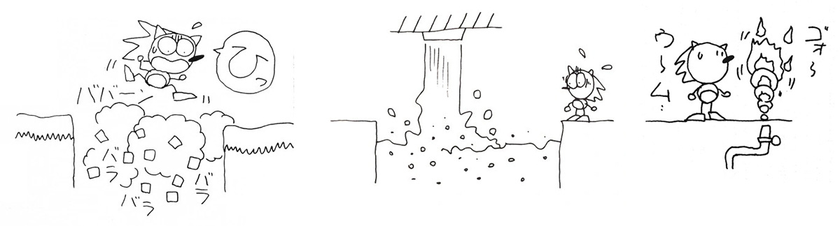 Mi capita spesso di disegnare sul mio PDA quando sono in treno e da quei disegni è partito [il progetto LocoRoco]. Molti dei personaggi secondari, come Chuppa, Nyokki e Mojya, sono stati concepiti sul mio PDA. Mentre l’intelligenza artificiale di LocoRoso si basa sul programma che ho realizzato quando ero uno studente.