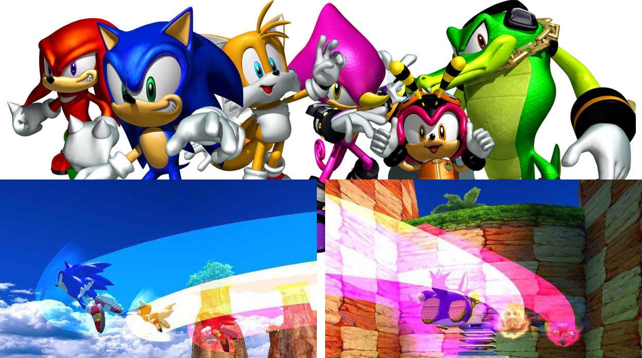 Con Sonic Heroes Sega riparte da tre: tre console per la prima uscita multipla di Sonic, su PlayStation 2, GameCube e Xbox. Ma anche tre eroi, tanti sono quelli che formano le quattro squadre tra cui scegliere la propria. Dodici personaggi in cerca di un nuovo successo, che Sonic Team e Yuji Naka vogliono raggiungere con una formula di gioco più asciutta rispetto a quella dei recenti Sonic Adventure. A dare l’addio è qualsiasi velleità esplorativa, mentre il focus dell’esperienza di gioco è sulla versatilità dei tre protagonisti, di cui prendere alternativamente il controllo in qualsiasi momento. Ogni team ha qualcuno che eccelle in velocità, chi riesce a muoversi in aria e chi può puntare tutto sulla forza bruta.