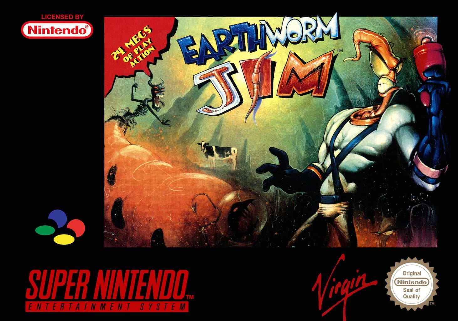 [WC] Un lombrico, una tuta spaziale dalle abilità stupefacenti e un corvo antropomorfo che lavora come cacciatore di taglie galattico: basterebbe questo per lasciarsi conquistare da Earthworm Jim, il videogioco di Shiny Entertainment lanciato sul Mega Drive e sul Super NES. L'opera prima della casa di Laguna Beach, che da lì a qualche anno avrebbe dato i natali a un certo MDK, combinava le meccaniche classiche dei videogiochi di piattaforme e quelle dei "run and gun", permettendo al prode Jim di usare la pistola per eliminare gli avversari o di sfruttare la testa a mo' di frusta per farsi strada tra i nemici e muoversi tra una piattaforma e l'altra.