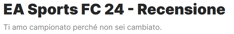 Qui abbiamo il titolo, ma soprattutto il sottotitolo, della recensione di EA Sports FC 24 (Electronic Arts per qualsiasi formato) pubblicata da IGN. La citazione è semplice ma efficace, perché si adatta bene all’argomento: la tradizione di FIFA che è stata travasata in EA Sports FC.