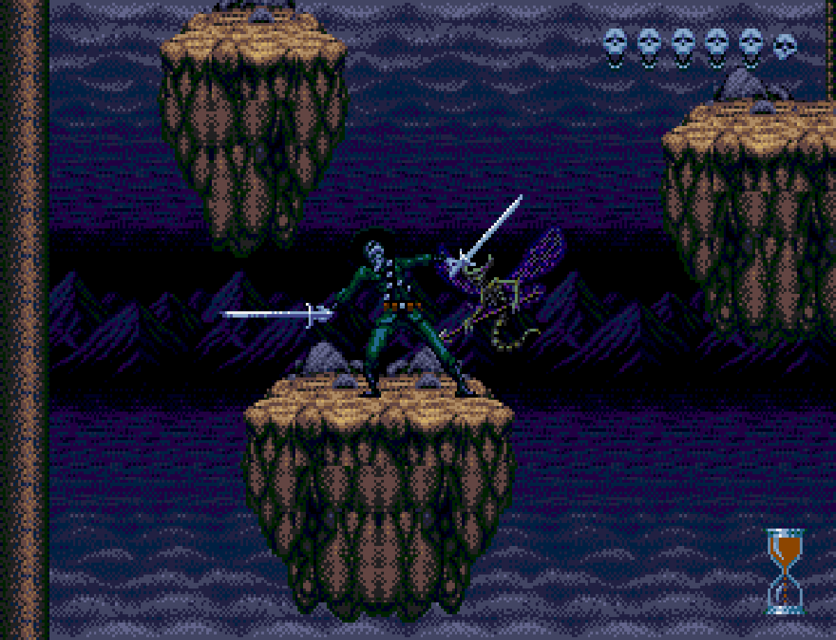 Chakan The Forever Man parte da una serie di albi a fumetti e viene consegnato nelle mani di Recreational Software, che dopo una scissione del team (già al lavoro su Taz-Mania nello stesso anno), si ritrova come Extended Play. La lunga e verbosa sequenza introduttiva del gioco è quanto ereditato dalla vita precedente come pubblicazione a fumetti, mentre sullo schermo Chakan si adegua a uno stile piuttosto canonico: l’affascinante sprite del protagonista, condannato alla vita eterna e a combattere senza riposo, si muove attraverso quattro mondi alla ricerca di altrettanti signori del male. Quando non si salta, si lavora con le doppie spade di Chakan. E, molto più spesso, si finisce in qualche pozzo senza fondo che costringe a ricominciare dall’inizio.
