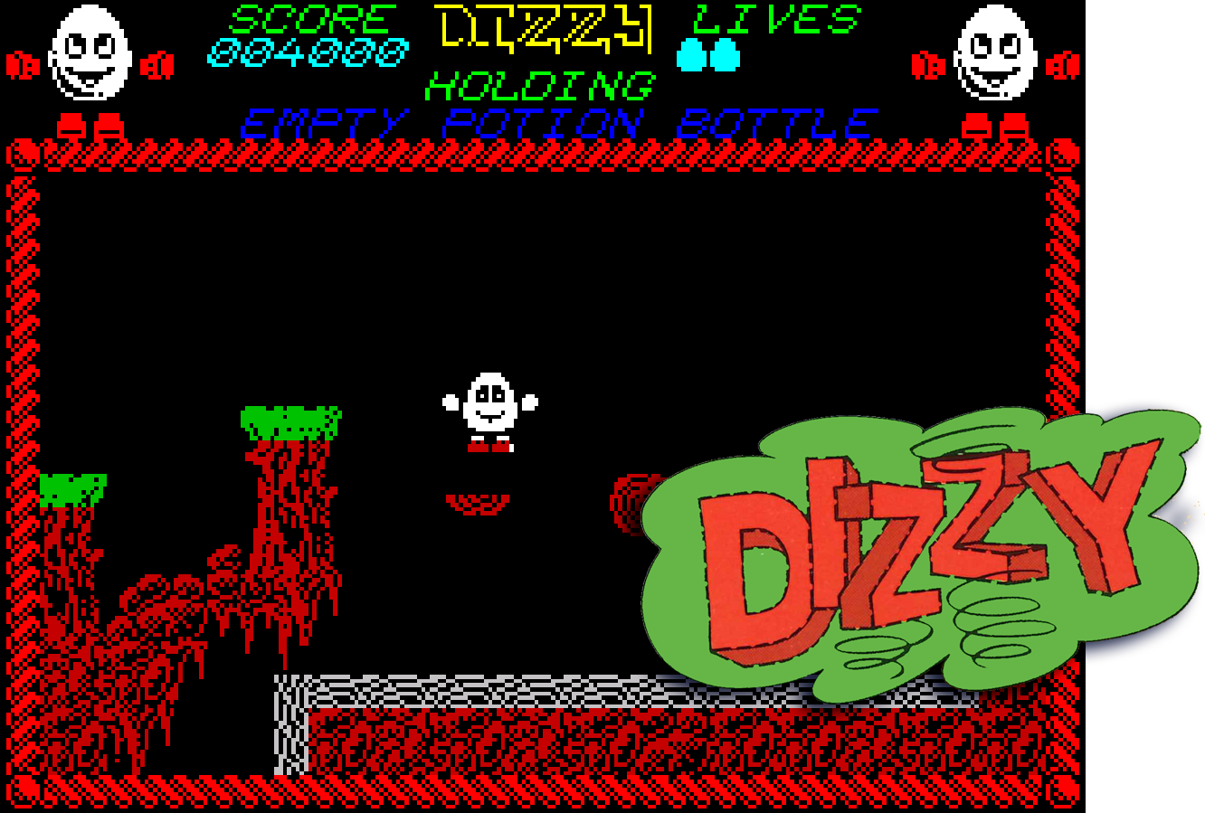 Debutto: ZX Spectrum, novembre 1987 | Game design: The Oliver TwinsIl nuovo gioco di Andrew e Philip Oliver, gli Oliver Twins, è un’avventura composta da circa cinquanta schermate e un uovo. L’uovo è Dizzy, sfuggito a un’omelette perché dotato di gambe, braccia e uno sguardo che toglierebbe l’appetito a chiunque.