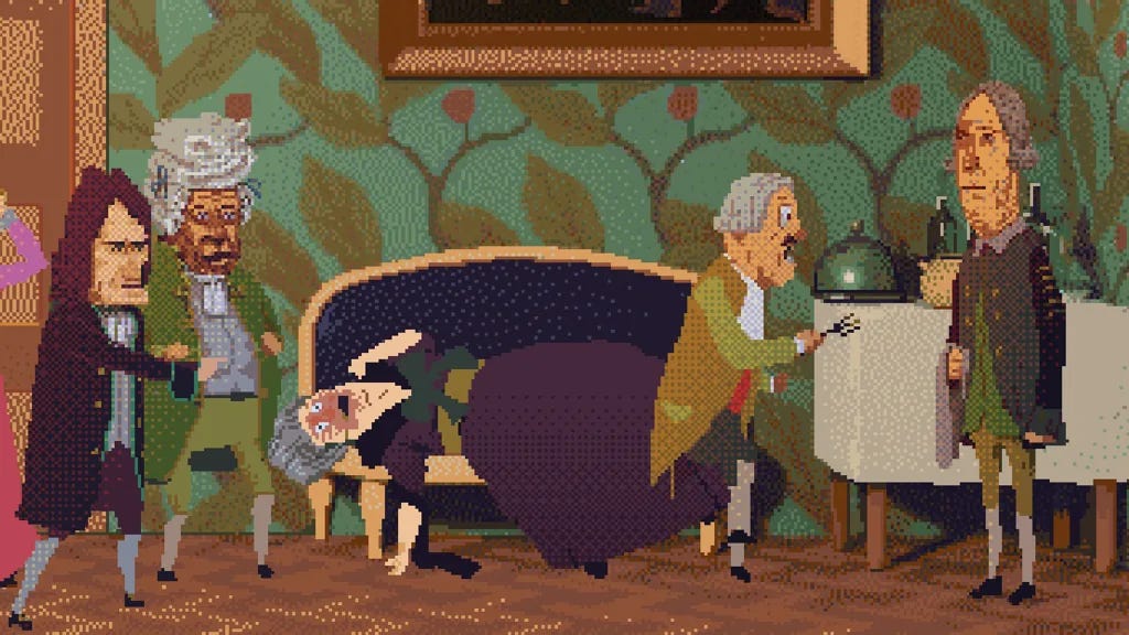 Parto dai giochi investigativi, che dopo l’apoteosi di Return of the Obra Dinn (do per scontato che questo lo conosciate) stanno vivendo, se non una seconda giovinezza, un timida rinascita. Ecco: The Case of the Golden Idol guida questa rinascita e lo fa con una struttura brillante e sagace. Lo so che a vederlo sembra il fratello storto di Beavis & Butt-head disegnato con Paint (non la migliore delle presentazioni, devo ammettere), ma fidatevi: è un bellissimo gioco di indagini che, di caso in caso, costruisce una backstory con più di un colpo di scena. Lo consiglio oggi anche se è uscito l’anno scorso perché sono stati pubblicati anche due DLC e così Golden Idol mi ha accompagnato fino a qualche mese fa. Mi è piaciuto così tanto, anche se i DLC non sono all’altezza dell’investigazione principale, che spero sentitamente che il team di sviluppo (Color Grey Games, sono lettoni) voglia sviluppare altri “The Case of”.