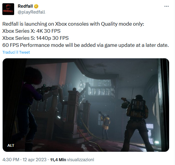 Torniamo al tweet di Redfall, che annunciava chiaramente: