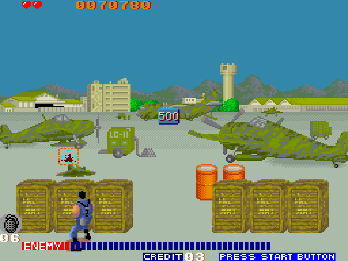 Ci saranno carri armati, elicotteri, caccia e sottomarini, oltre alla fanteria, ai granatieri e al resto delle forze che il nemico impiegherà per farvi fuori e tenersi i vostri gettoni. Per completare ogni livello si devono fare fuori i nemici, ma pure distruggere gli edifici. In tutti questi modi si possono ottenere altre granate da lanciare con il secondo pulsante o armi più potenti da utilizzare per qualche secondo. E quando la barra della distruzione è piena, il Jon Doe ai nostri comandi improvvisa un balletto degno di un cartone animato, mentre scompare all’orizzonte. Se poi volete giocare in due, Cabal non si fa problemi (a tenersi il doppio dei gettoni, s’intende!).