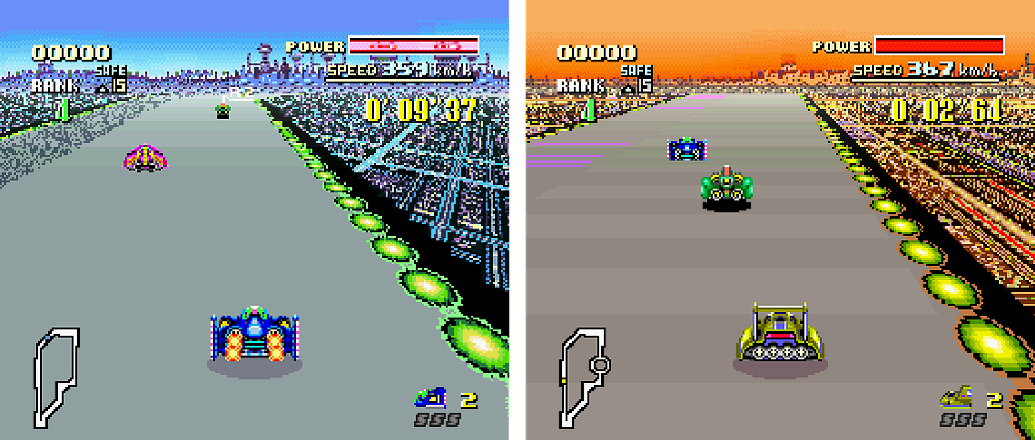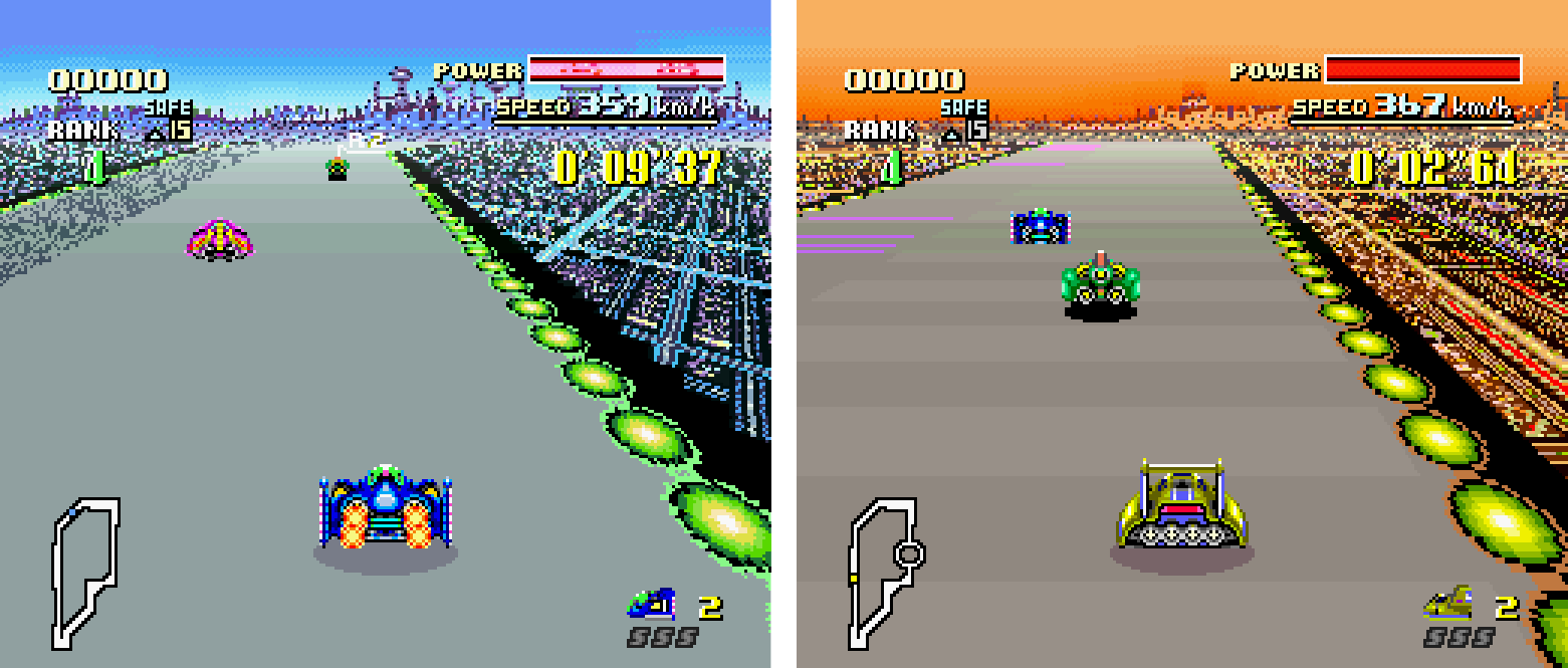 Con i suoi veicoli coloratissimi, i tracciati futuristici e un vero cast da fumetto, con tanto di buoni e cattivi, F-Zero fu un’arma importante nella battaglia che Nintendo stava combattendo con il minaccioso Mega Drive, il segnale che l’azienda era a suo agio tanto a osare tecnologicamente, quanto nell’elaborare nuovi universi fittizi e affascinanti stili di gioco.