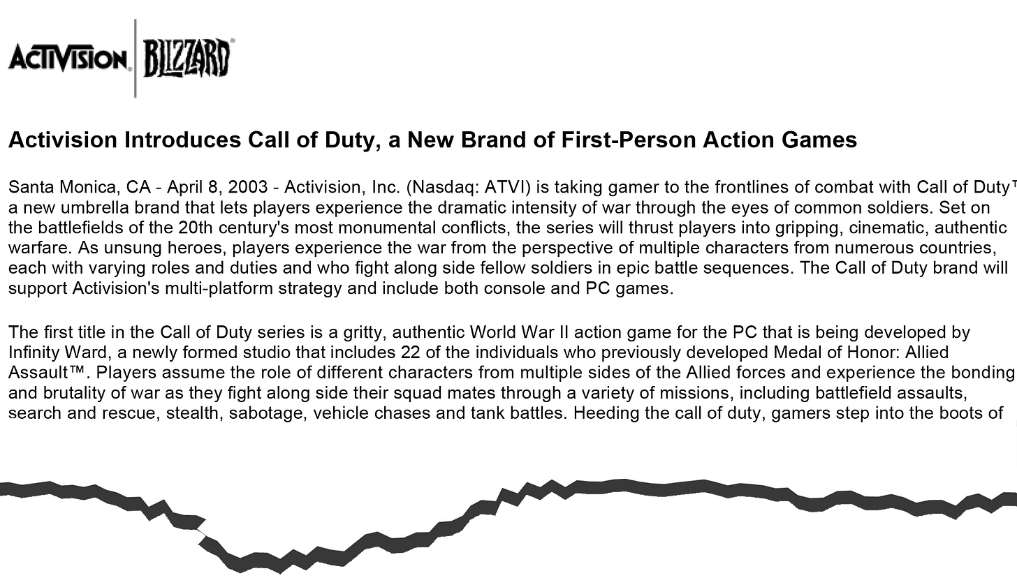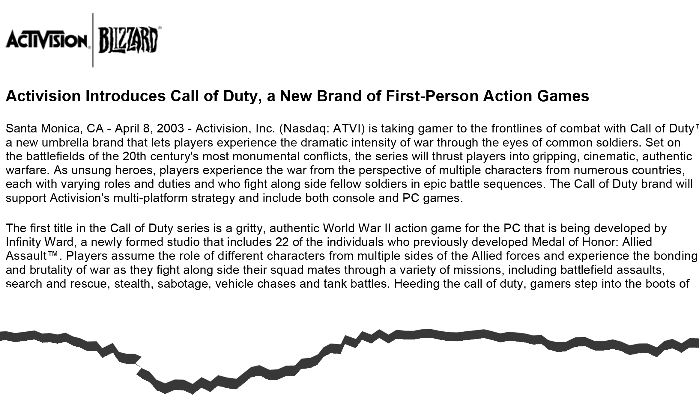 Si festeggiano nel 2023 le venti primavere di Call of Duty, che venne annunciato proprio in una primavera. L’8 aprile 2003 Activision pubblica un comunicato stampa che illustra un progetto ambizioso: “il brand di Call of Duty offrirà l’esperienza bellica più autentica, intensa e realistica, vissuta attraverso gli occhi dei soldati che combattono al fronte”, dice Dusty Welch, allora Vice President of Global Brand Management per Activision.