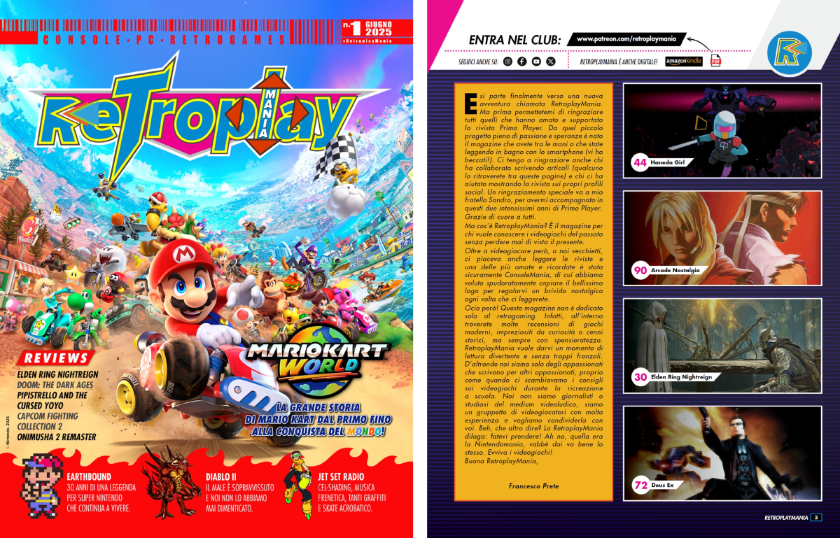 Per quello che mi riguarda è ormai inutile parlare di retrogaming come di una categoria a sé stante e, assieme a qualche amico/ospite, qui ho spiegato approfonditamente perché. In questo primo numero, con in copertina Mario Kart World e dentro un dossier su tutta la serie motorizzata a tema Regno dei funghi, ci sono anche delle rubriche dedicate ai giochi da sala e alle trasposizioni dei videogiochi in serie televisive o cinematografiche.