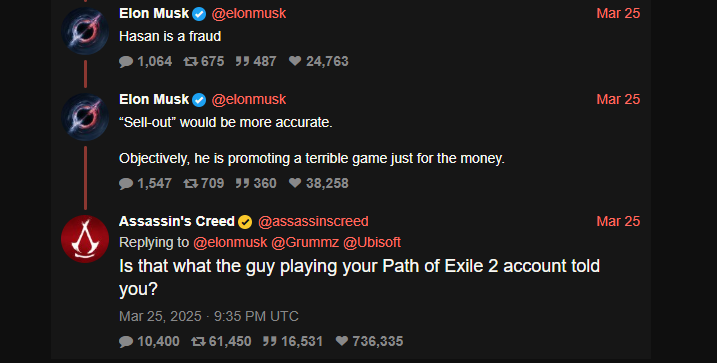 Nel frattempo, Assassin’s Creed Shadows è uscito, è secondo me un ottimo gioco e sta vendendo bene, anche se forse non così bene come Ubisoft sperava. Se non volete comprarlo per me, compratelo per infastidire Musk.